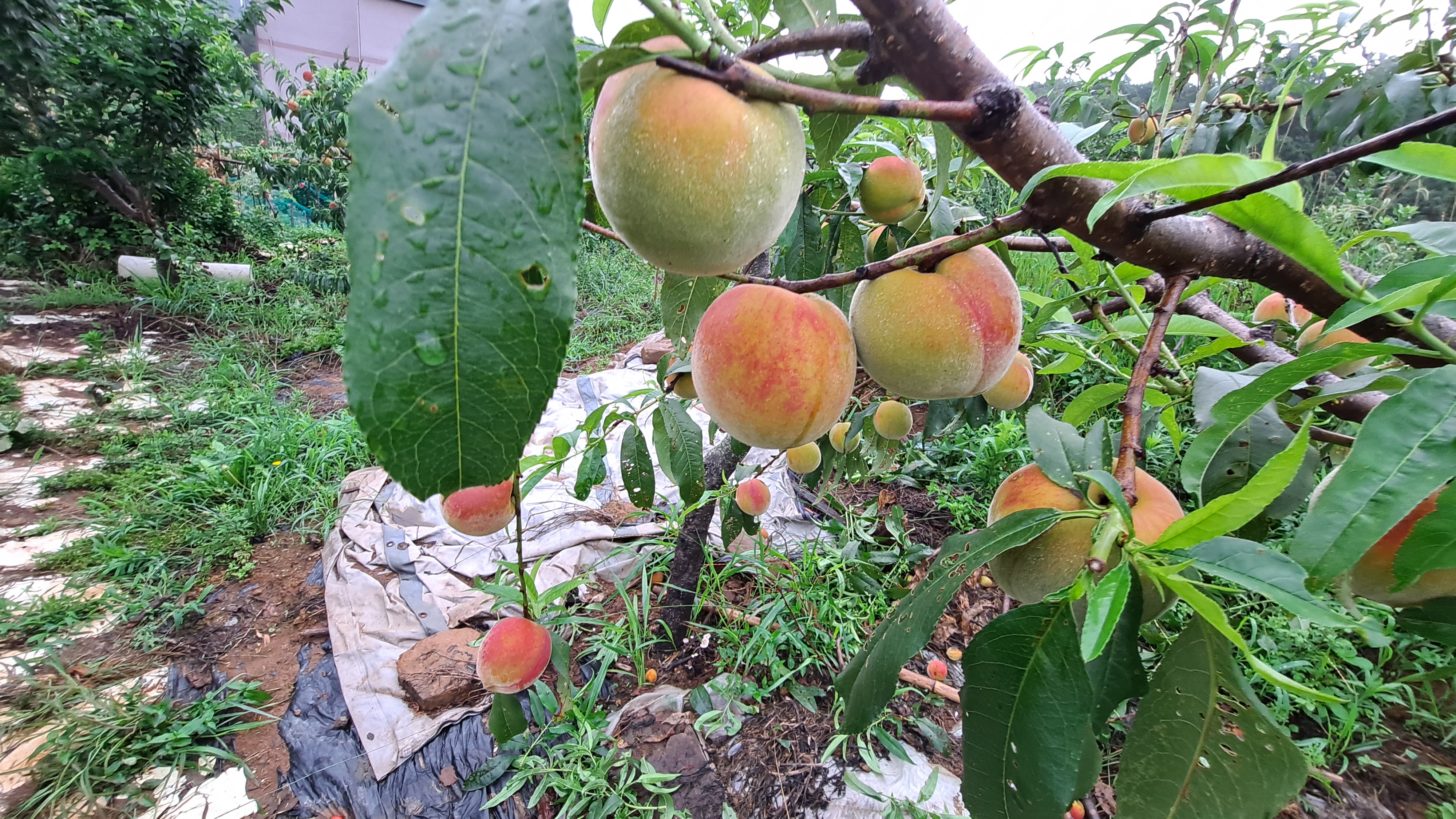 어어뿐 복숭아 슦아주고 잎따주기