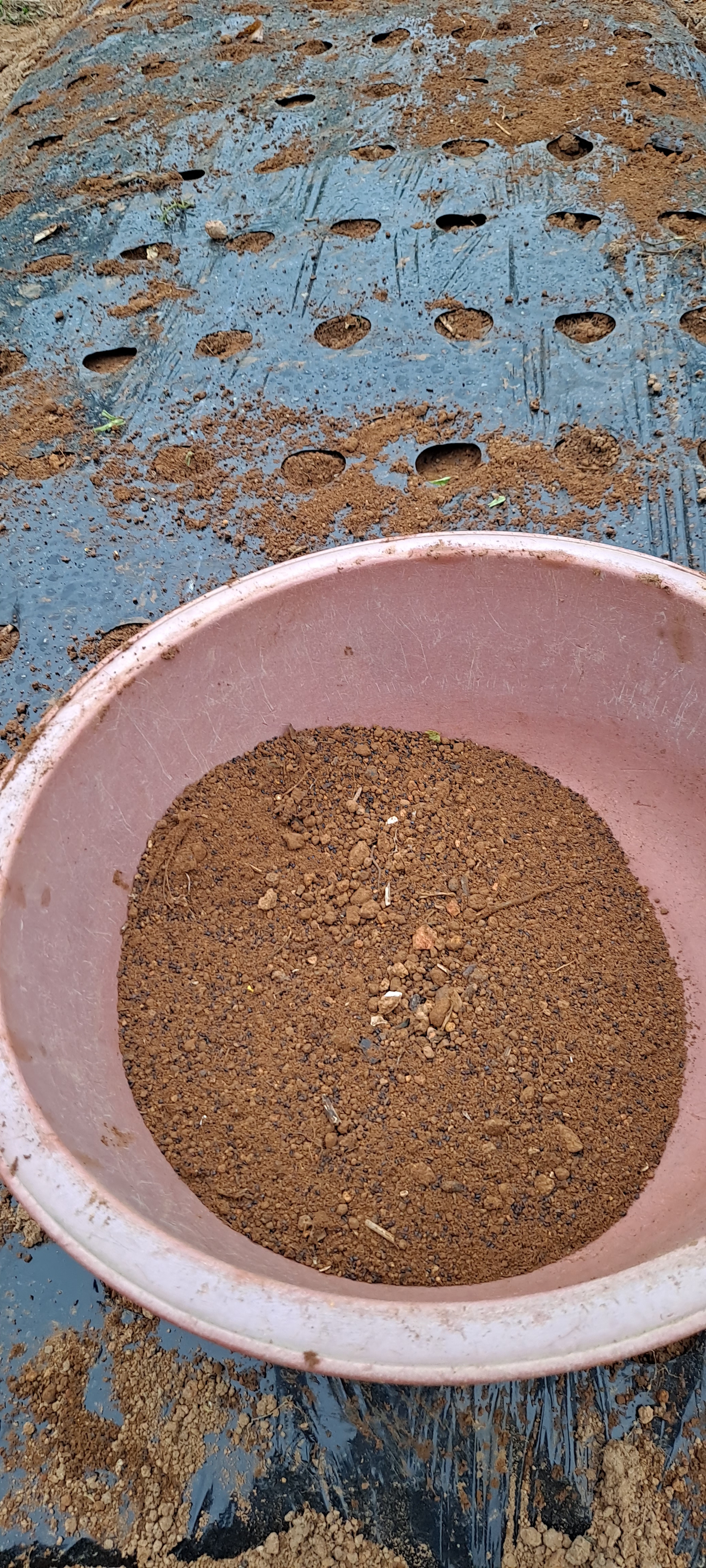 3)씨앗에 10배이상 모래나 흙을 석어서 마늘 유공비닐을 설치하고