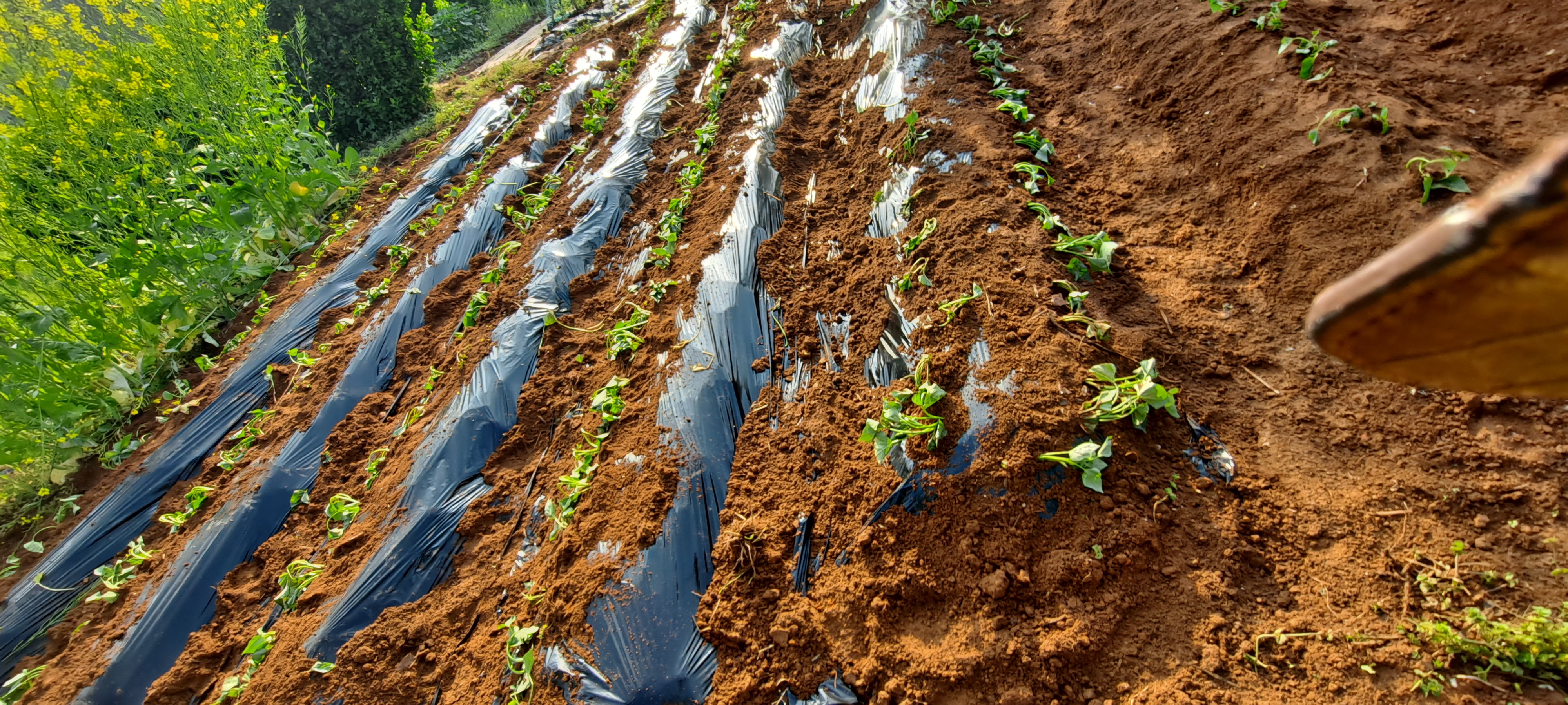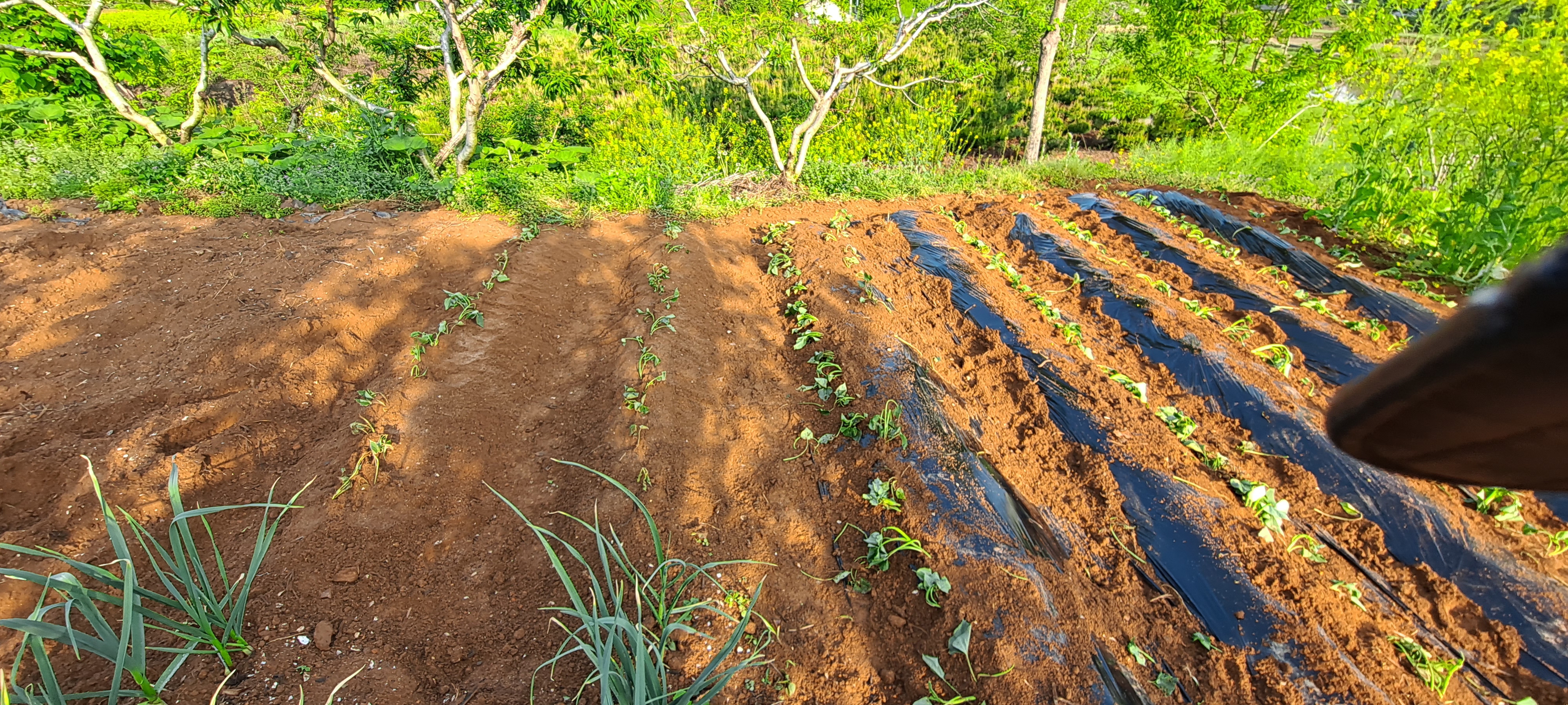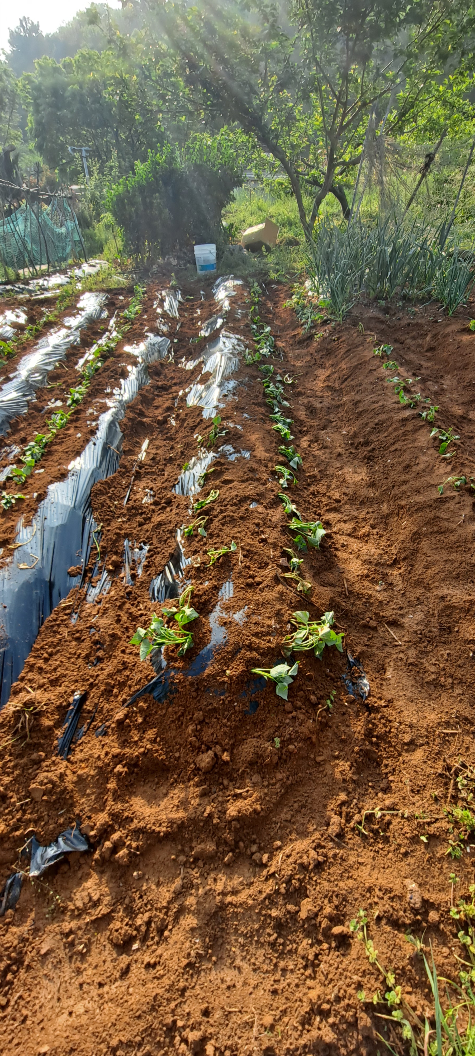 이른아침 비닐멀칭하고 부라부랴 종순 심고 마무리