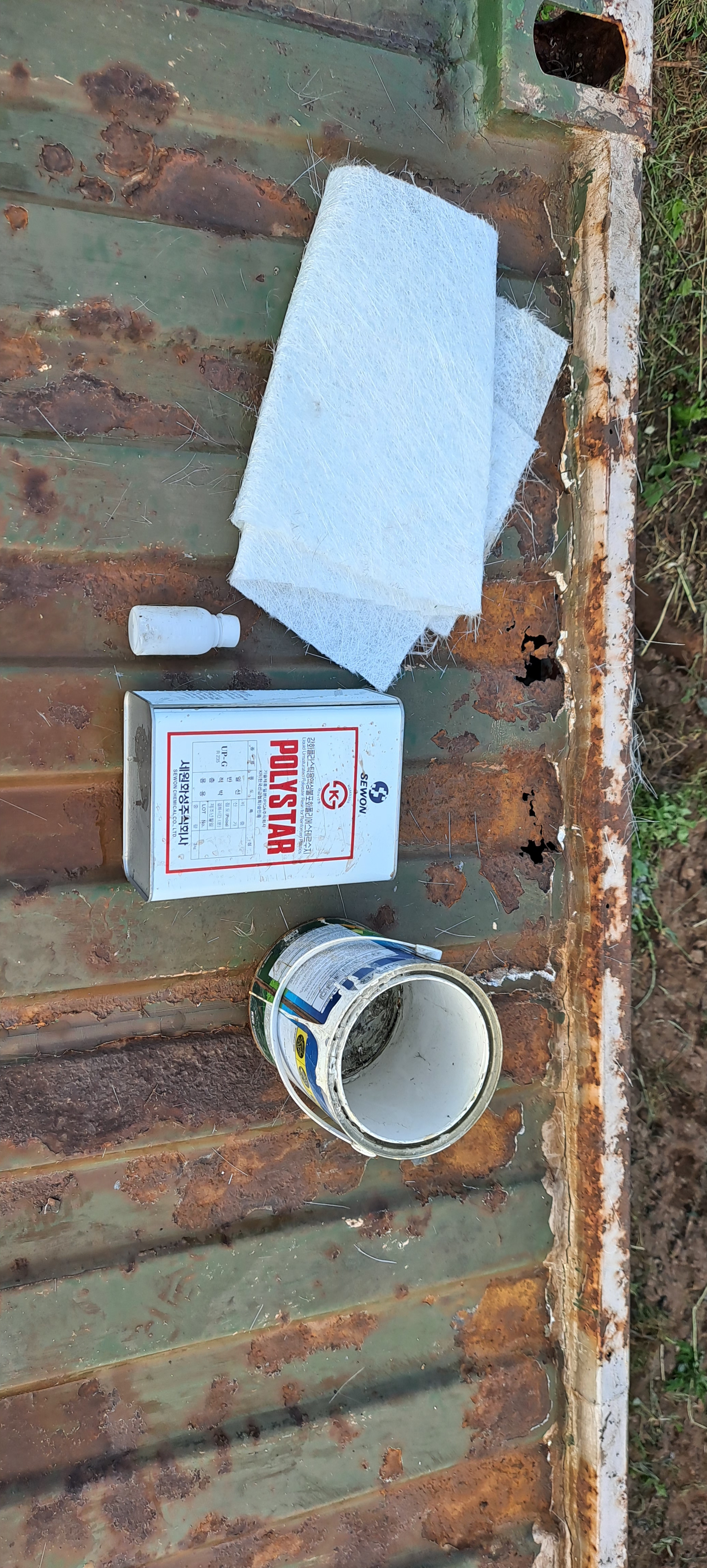 컨테이너가 부식되어 보수공사하고