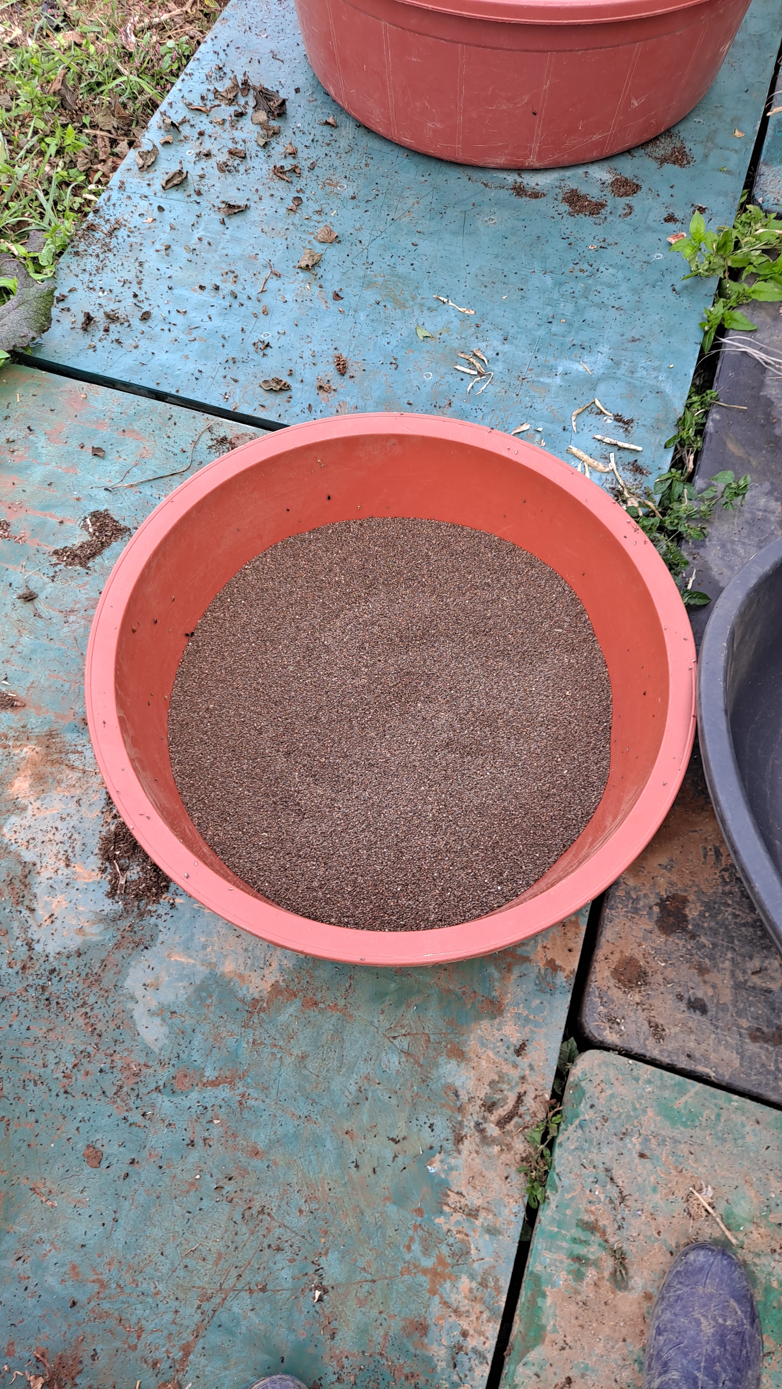 이른아침 들깨 털기