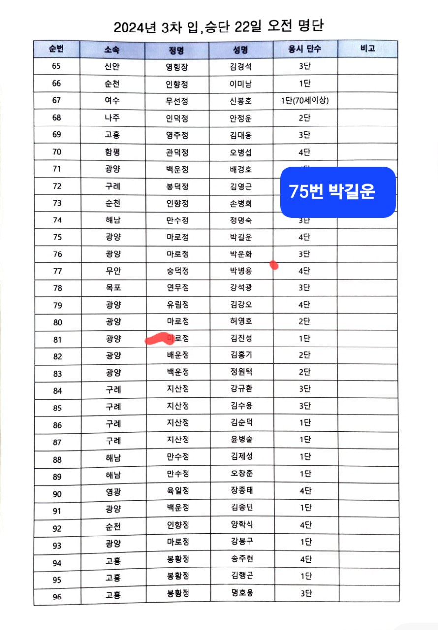 제3차전남입승단대회 합격자 안내드립니다